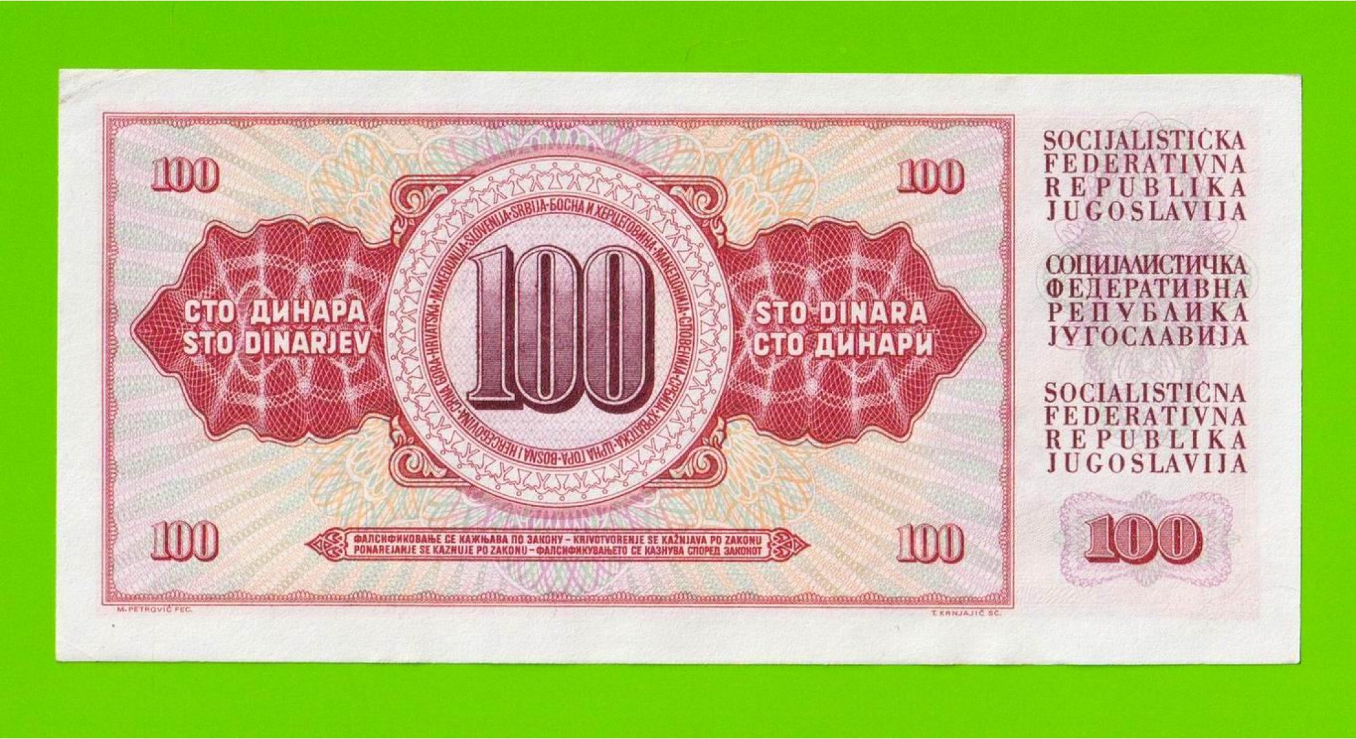 Югославия - 100 динаров - 1965 (TK) - aUNC!!!