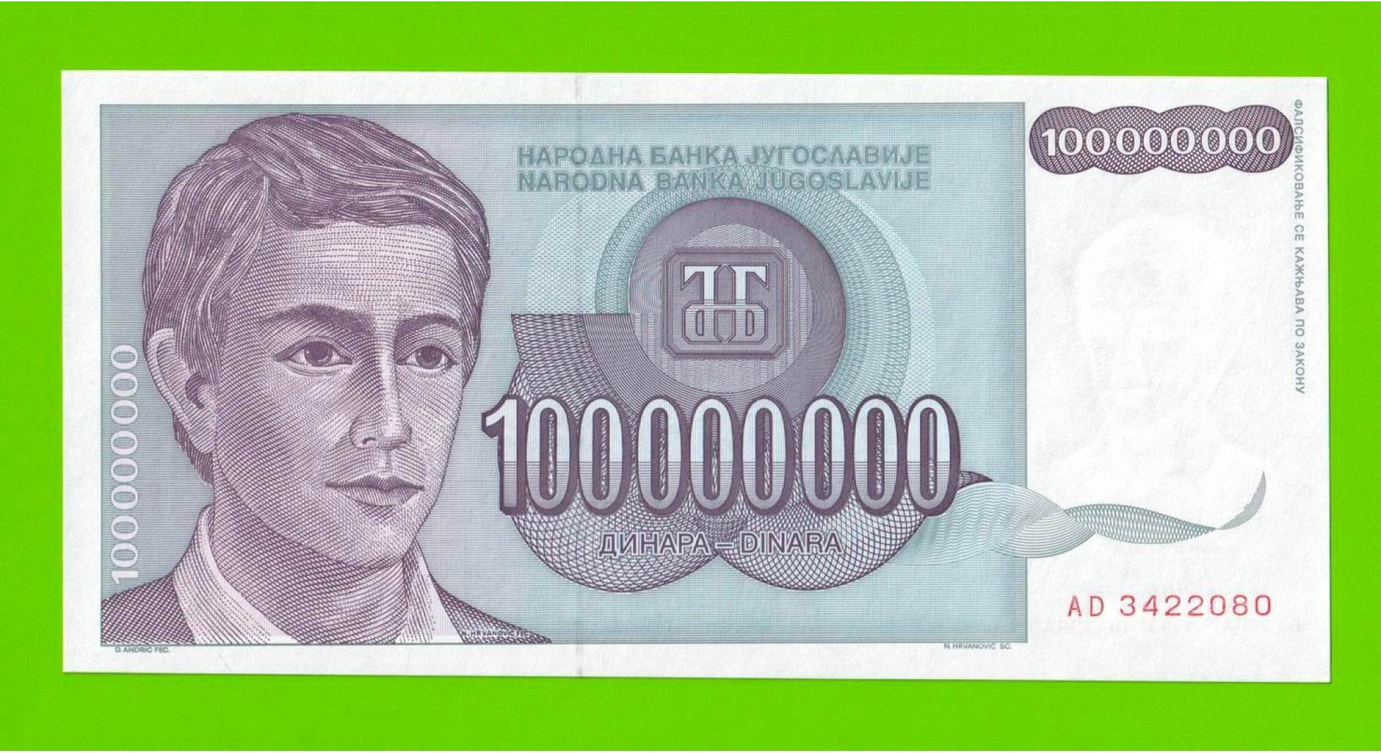 Югославия - 100 миллионов / 100000000 динаров - 1993 (AD) - UNC!!!