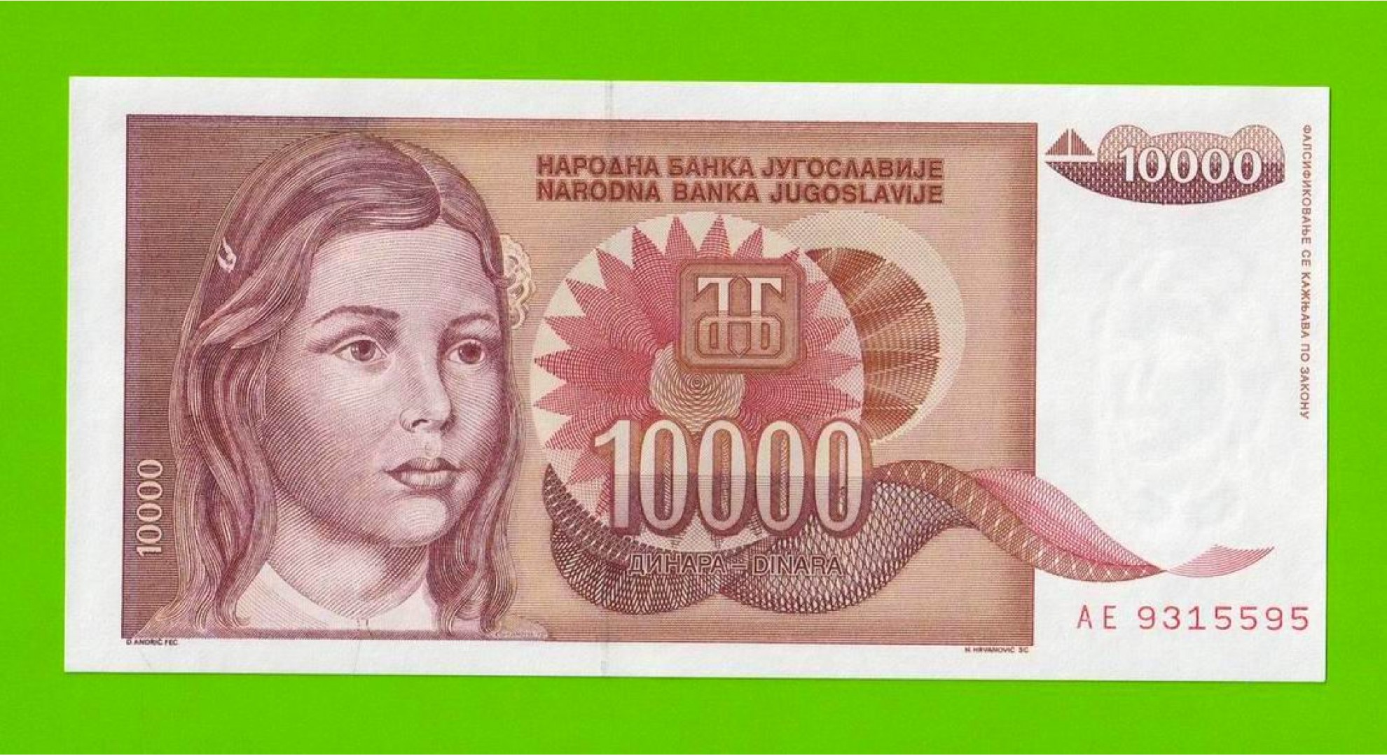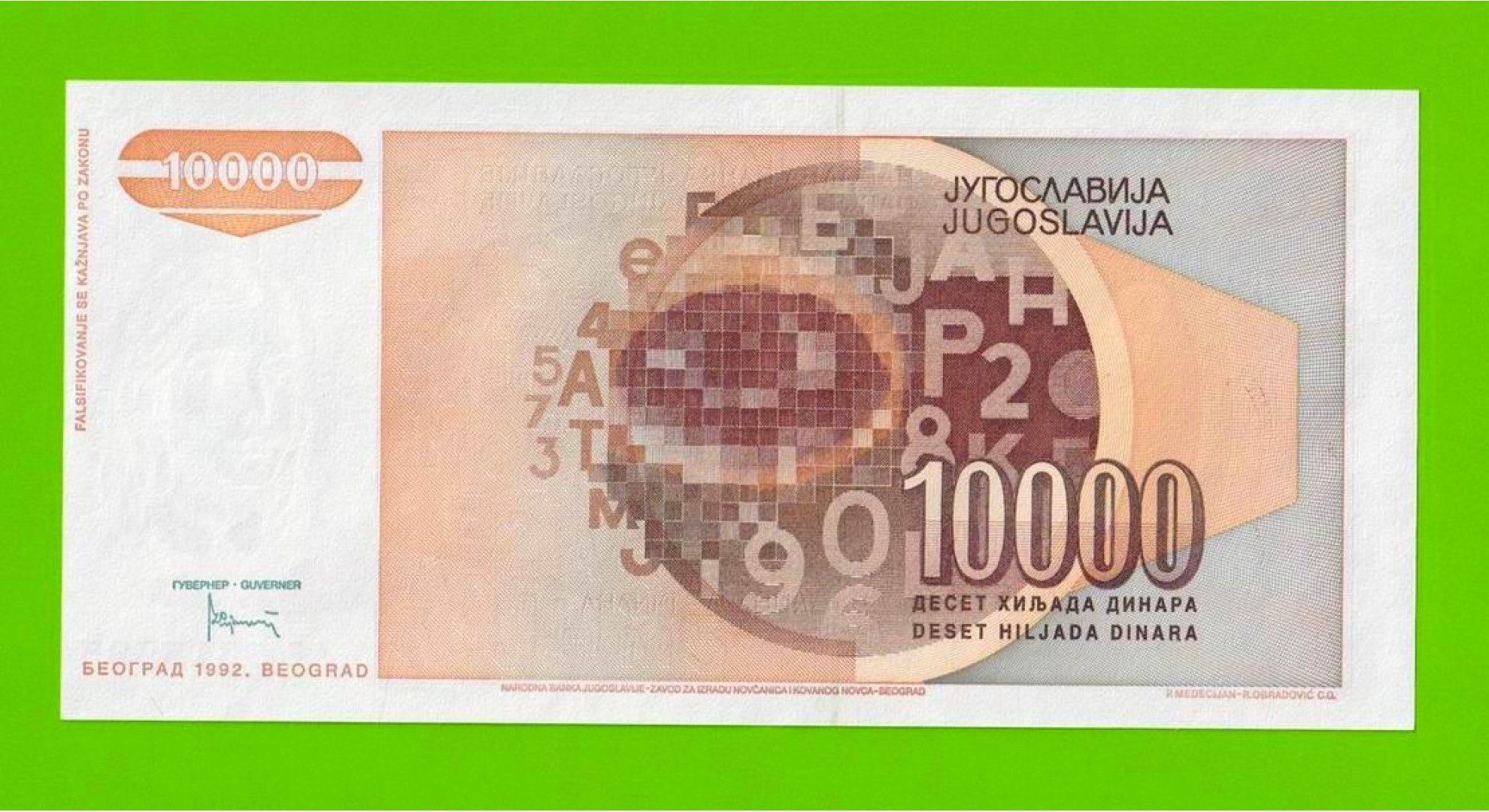 Югославия - 10000 динаров - 1992 - с точкой - UNC!!!