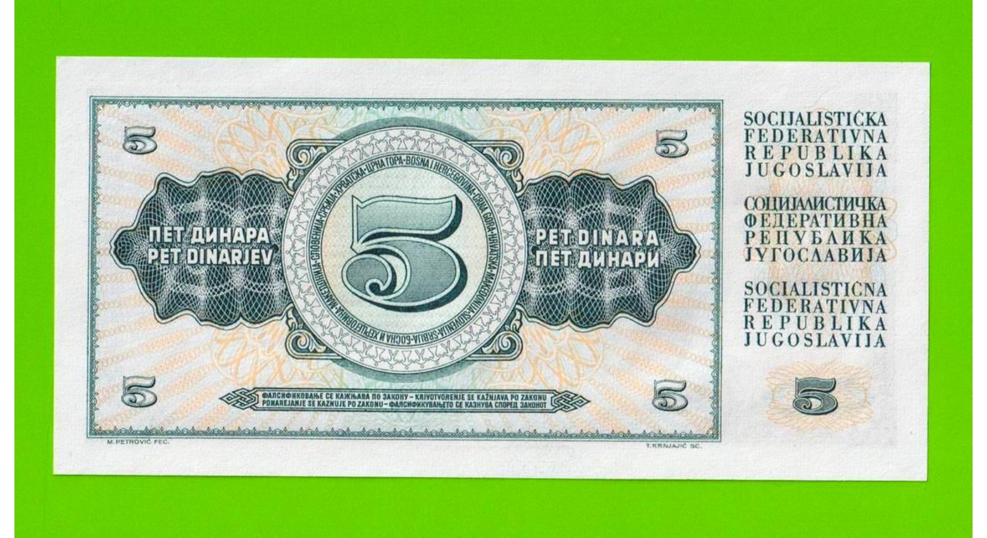 Югославия - 5 динаров - 1968 - UNC!!!
