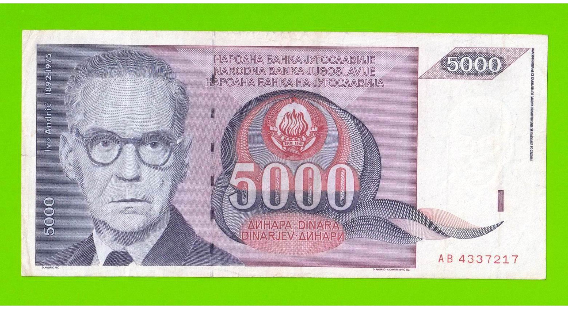Югославия - 5000 динаров - 1991 (AB)