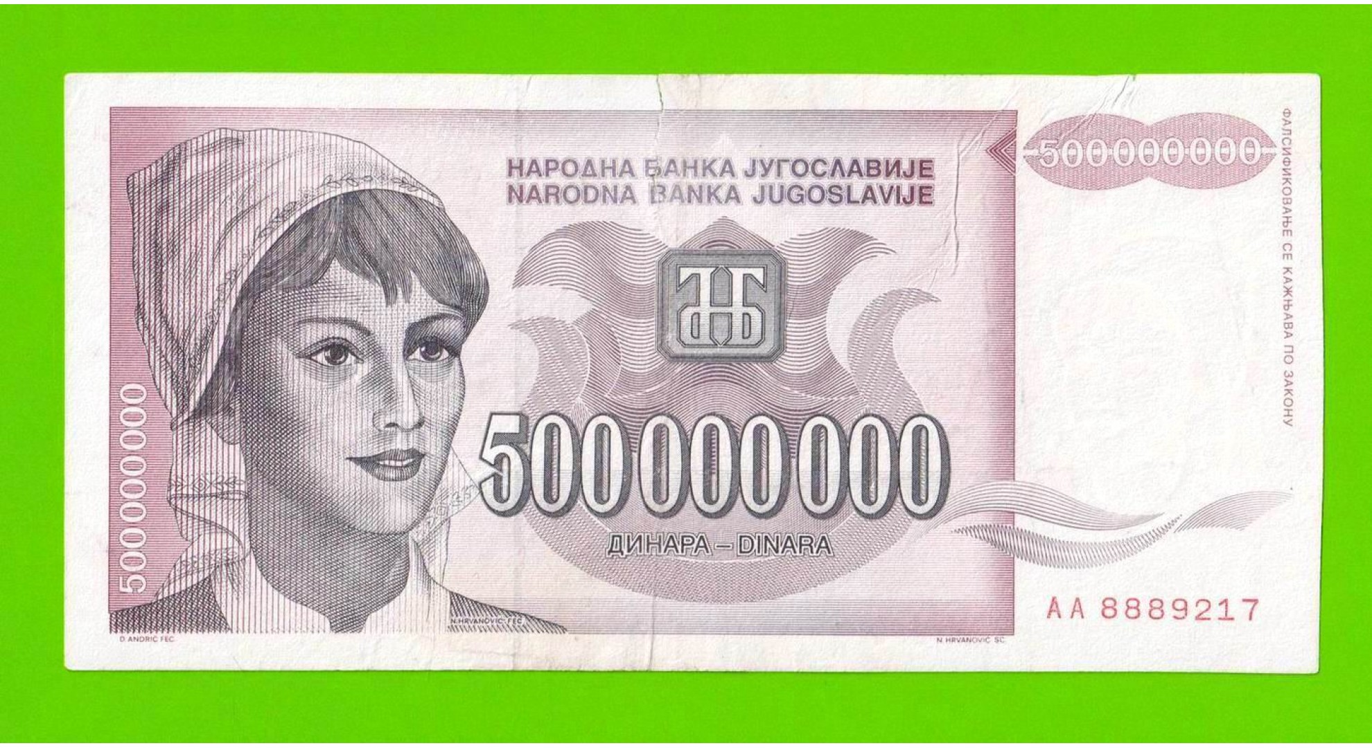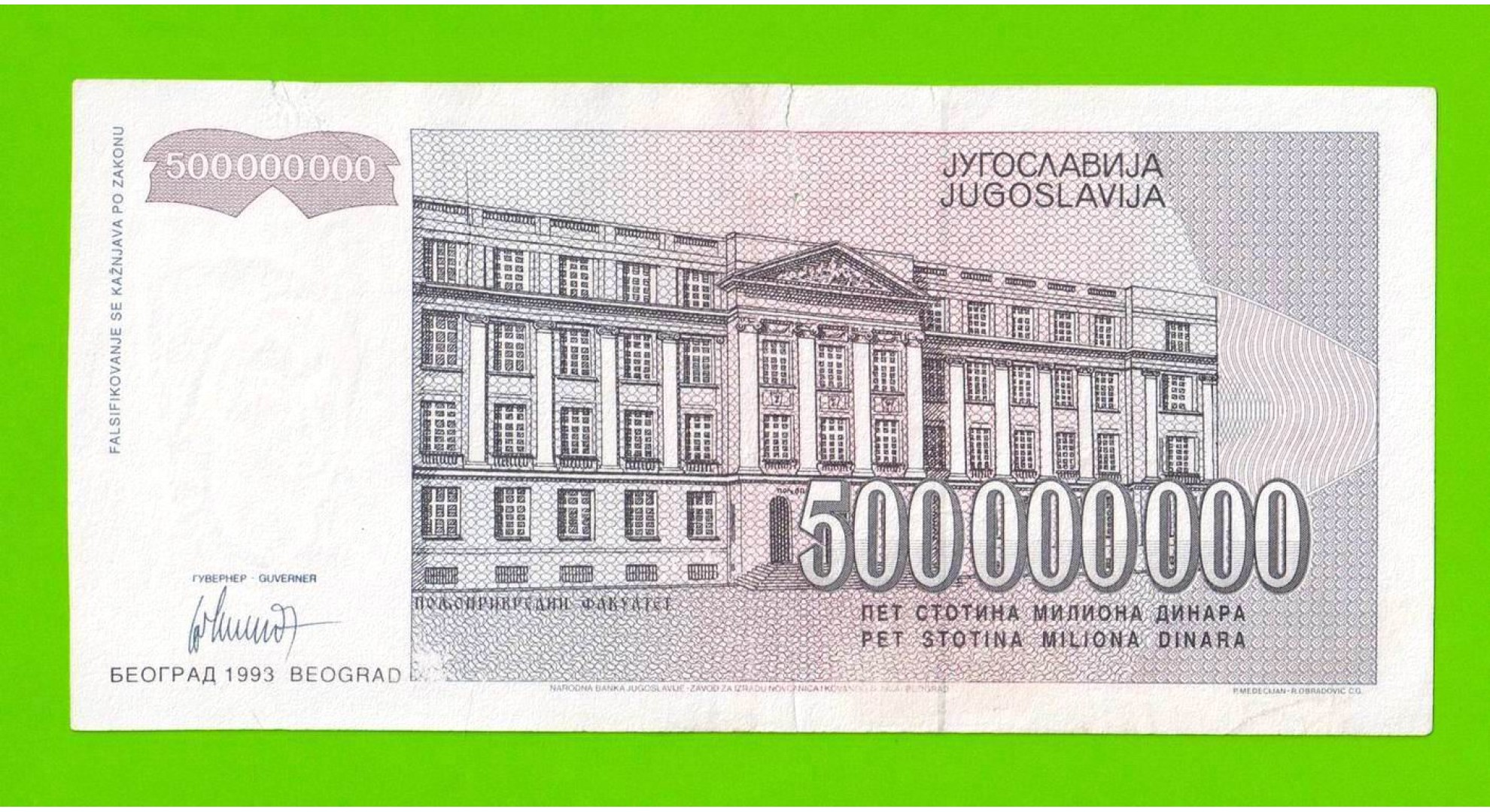 Югославия - 500000000 / 500 миллионов динаров - 1993 (AA)