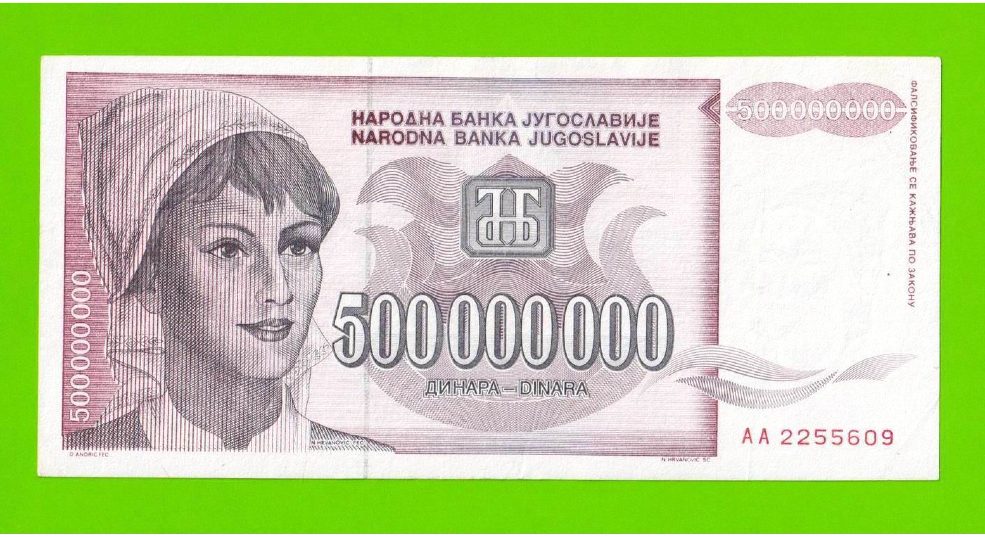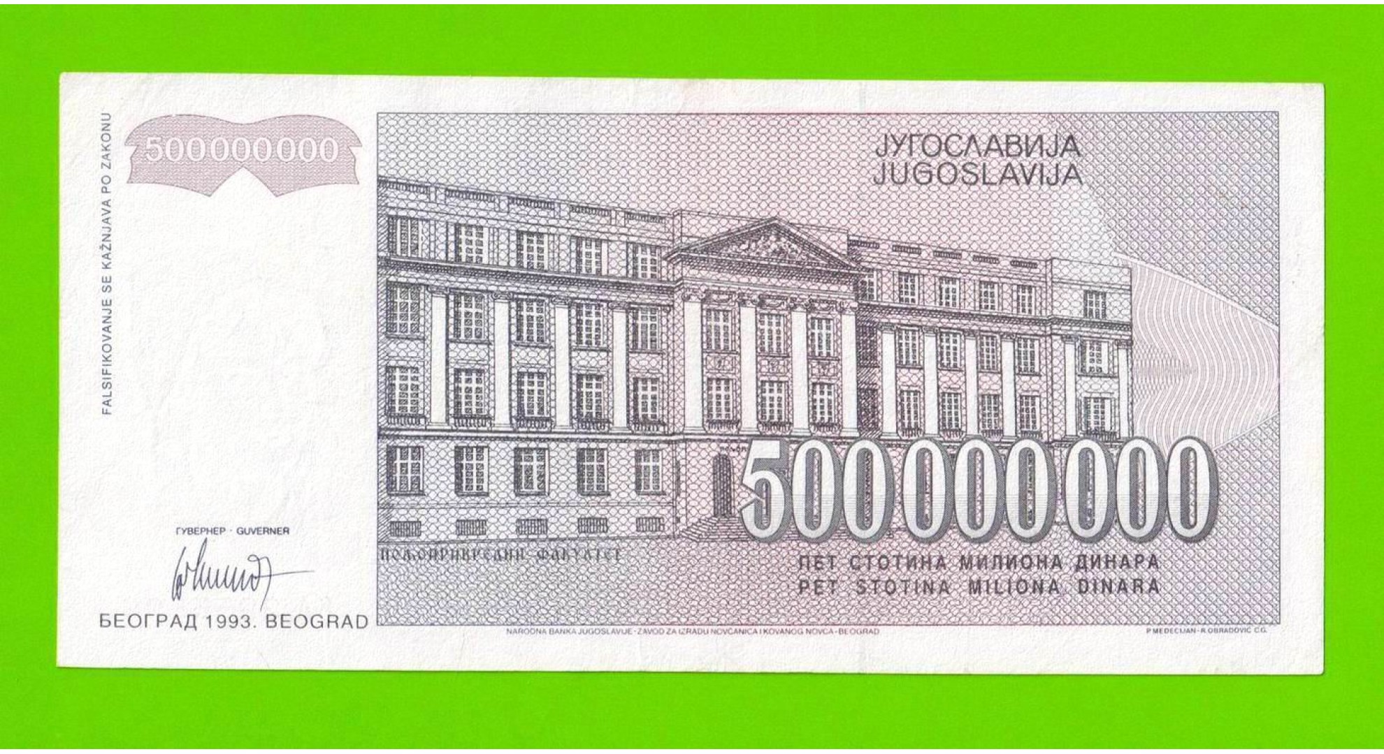 Югославия - 500000000 / 500 миллионов динаров - 1993 (AA)