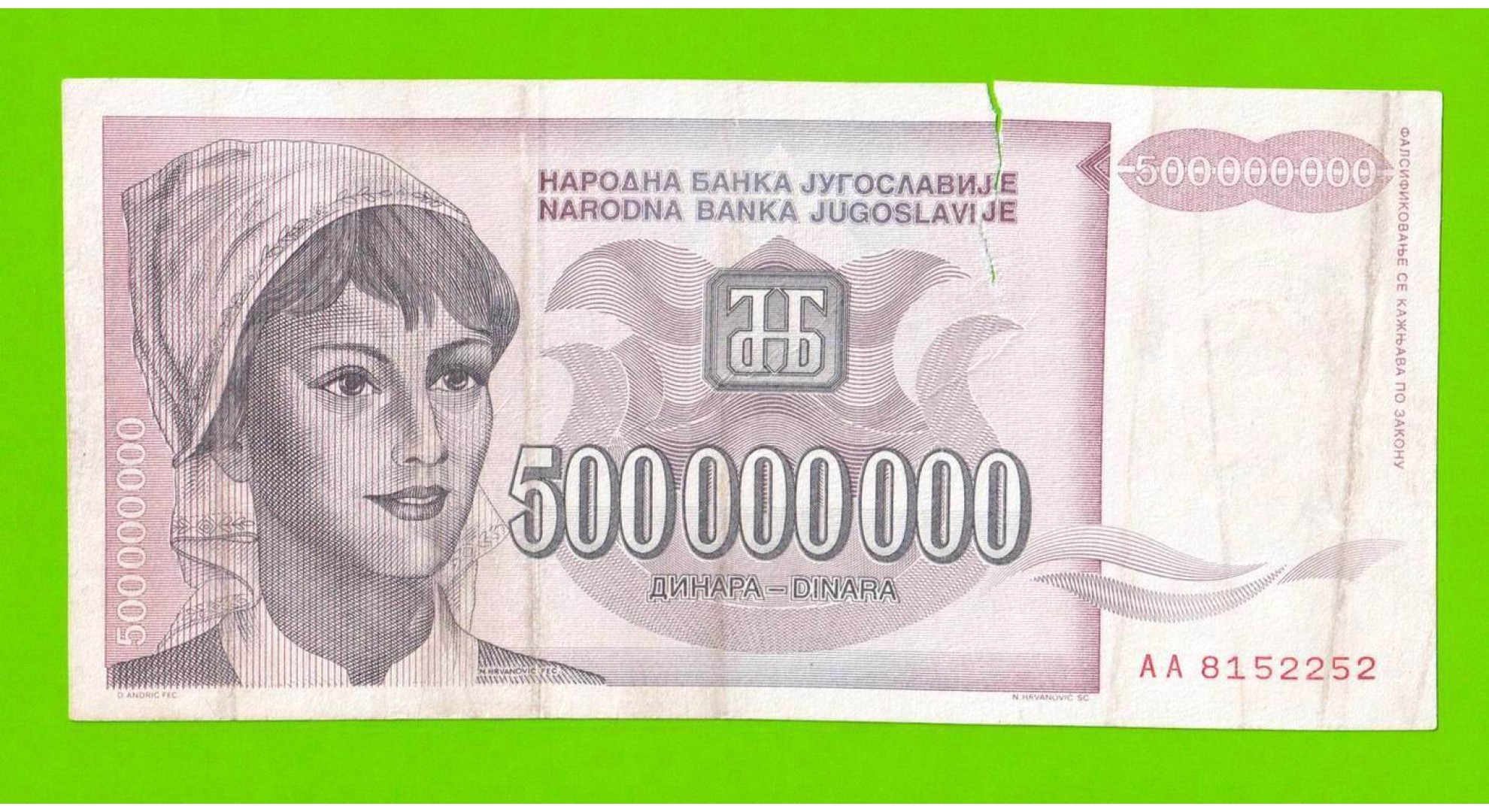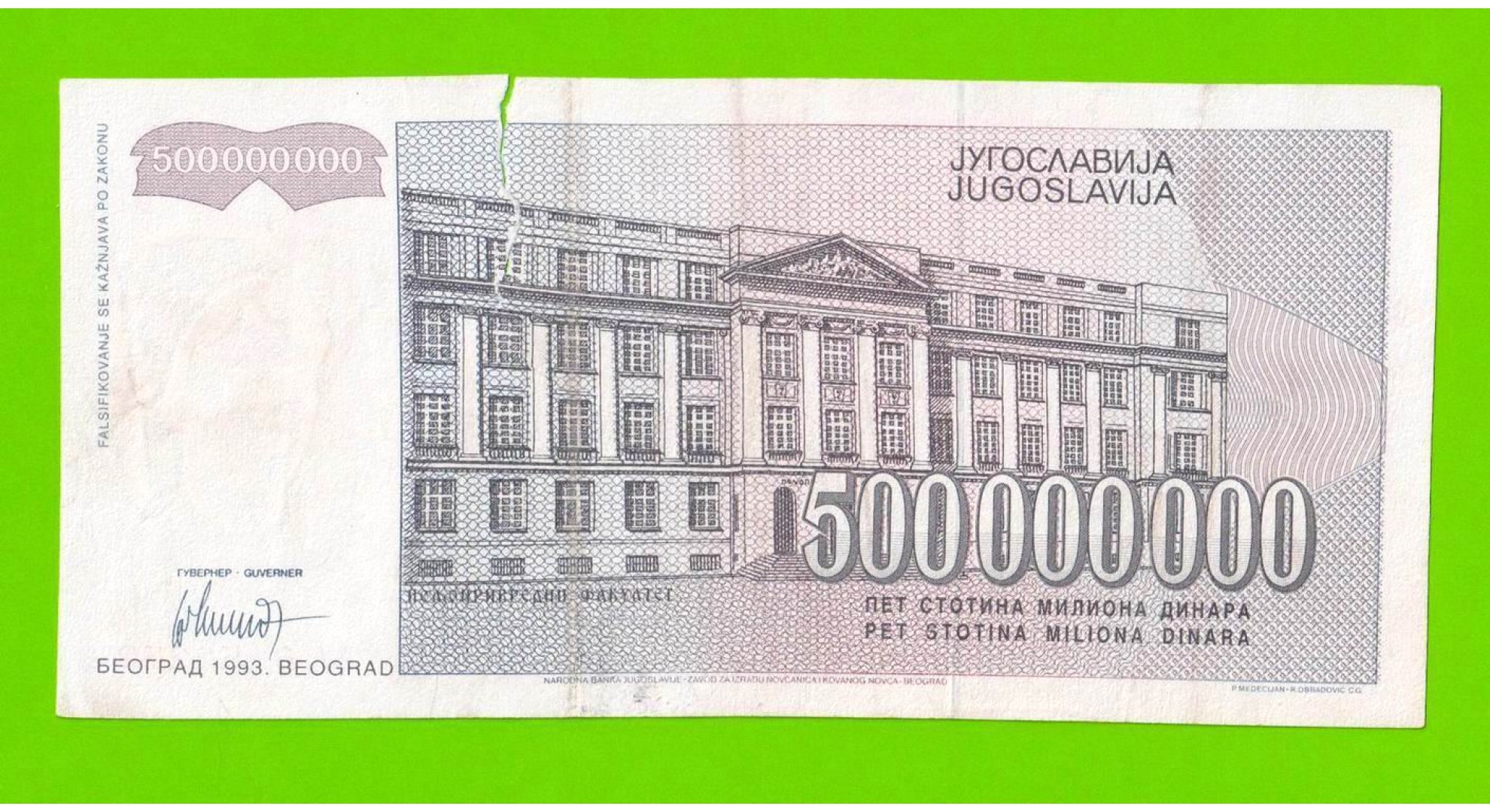 Югославия - 500000000 / 500 миллионов динаров - 1993 (AA)