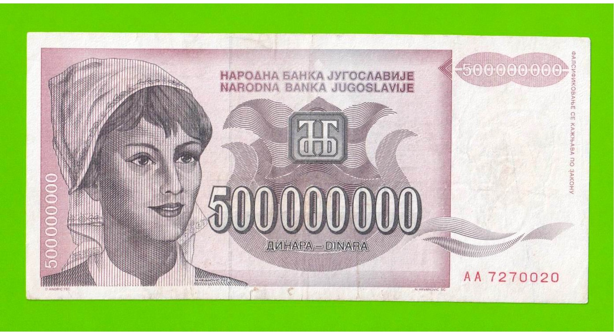 Югославия - 500000000 / 500 миллионов динаров - 1993 (AA)