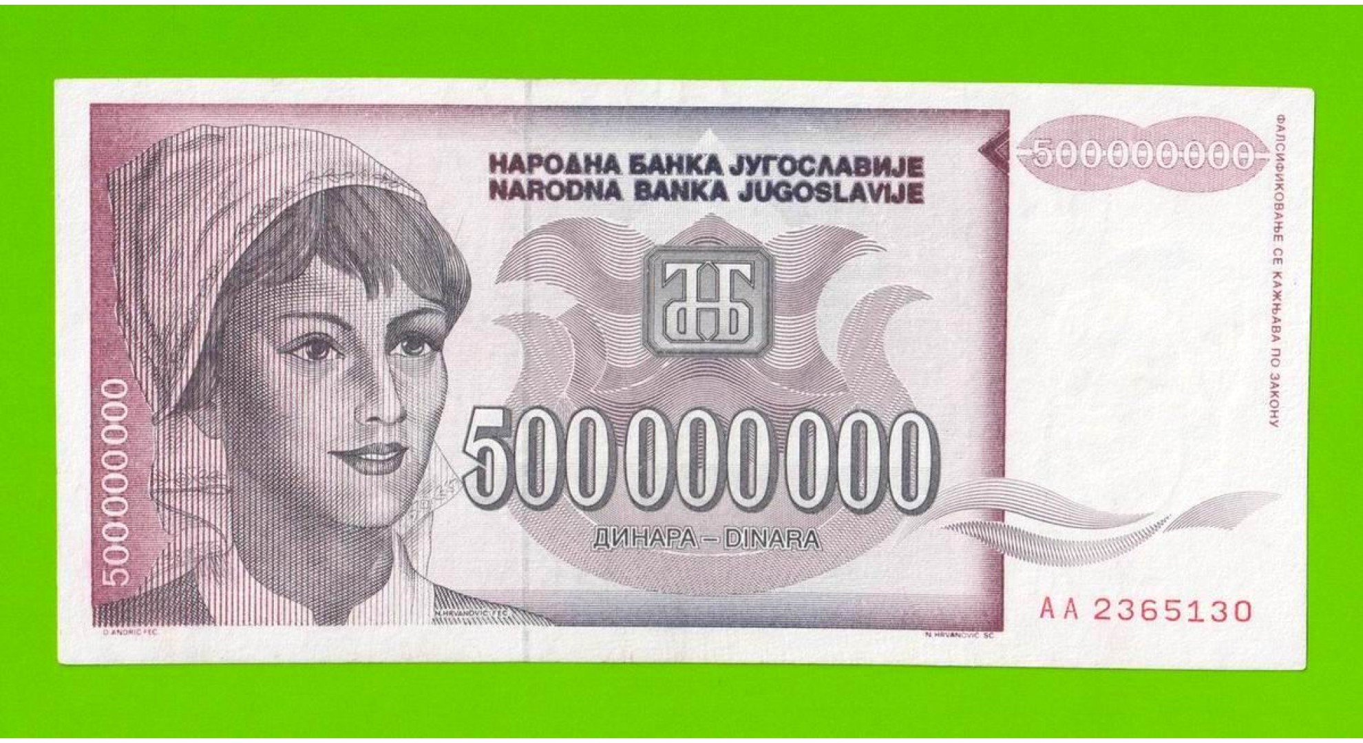 Югославия - 500000000 / 500 миллионов динаров - 1993 (AA)