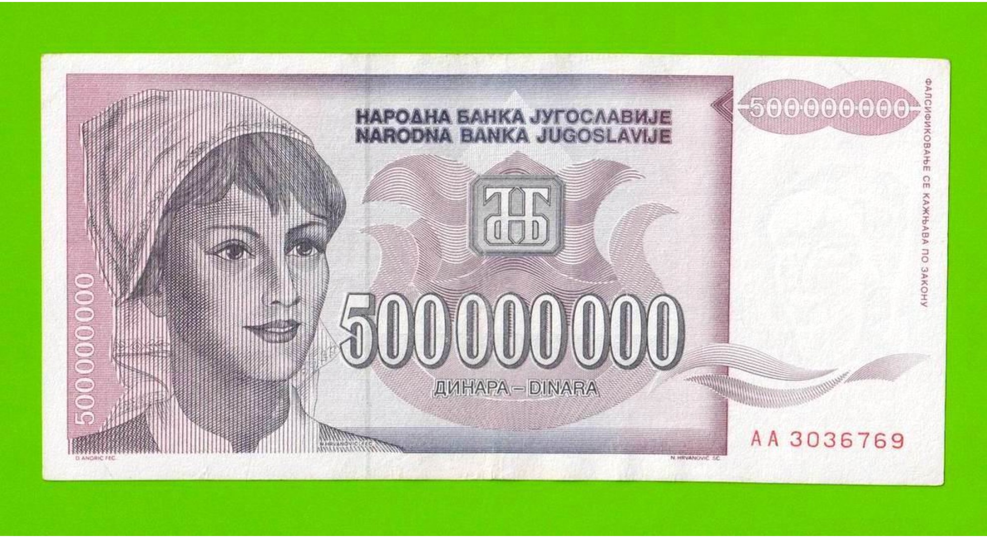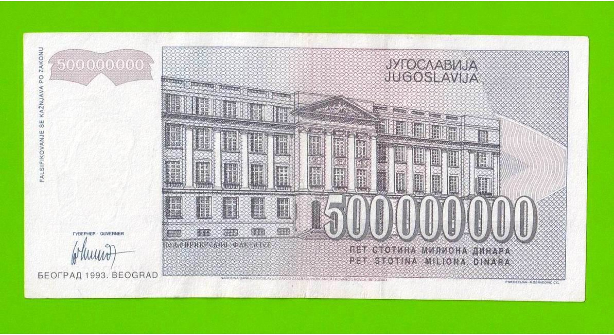 Югославия - 500000000 / 500 миллионов динаров - 1993 (AA)