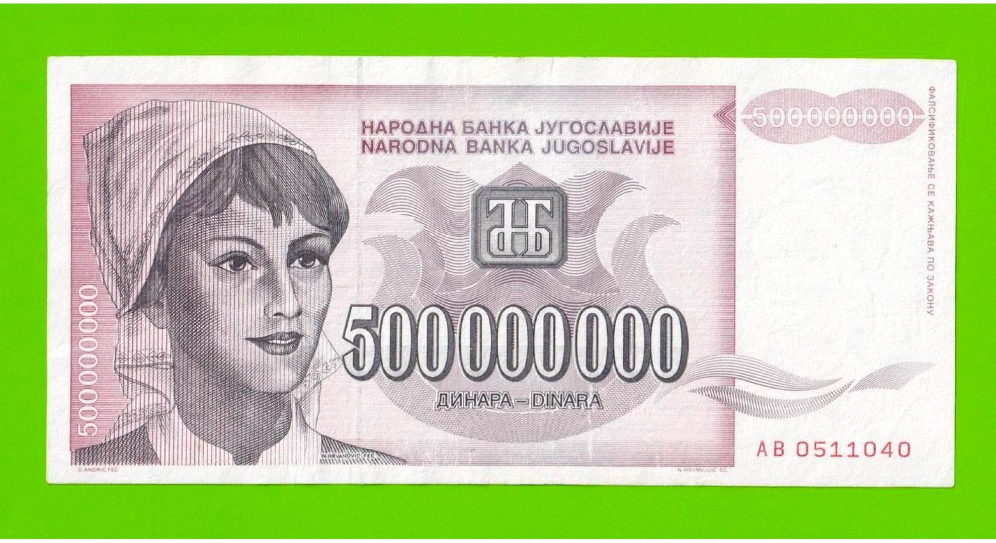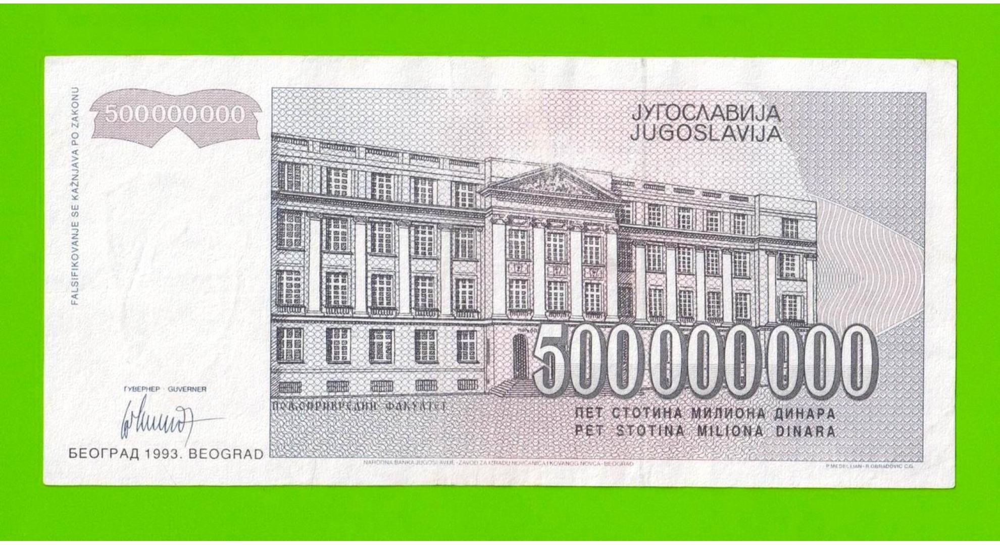 Югославия - 500000000 / 500 миллионов динаров - 1993 (AB)