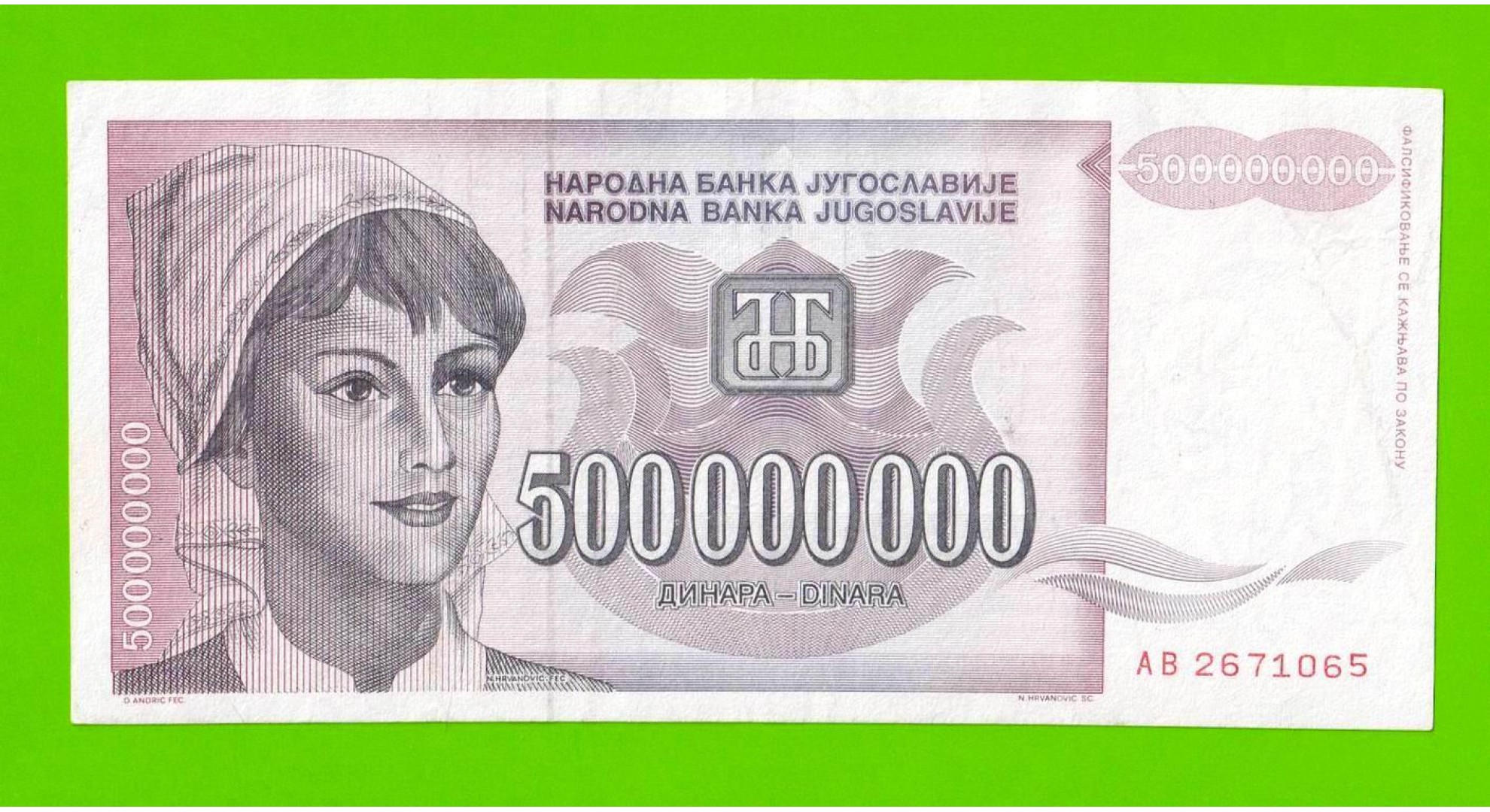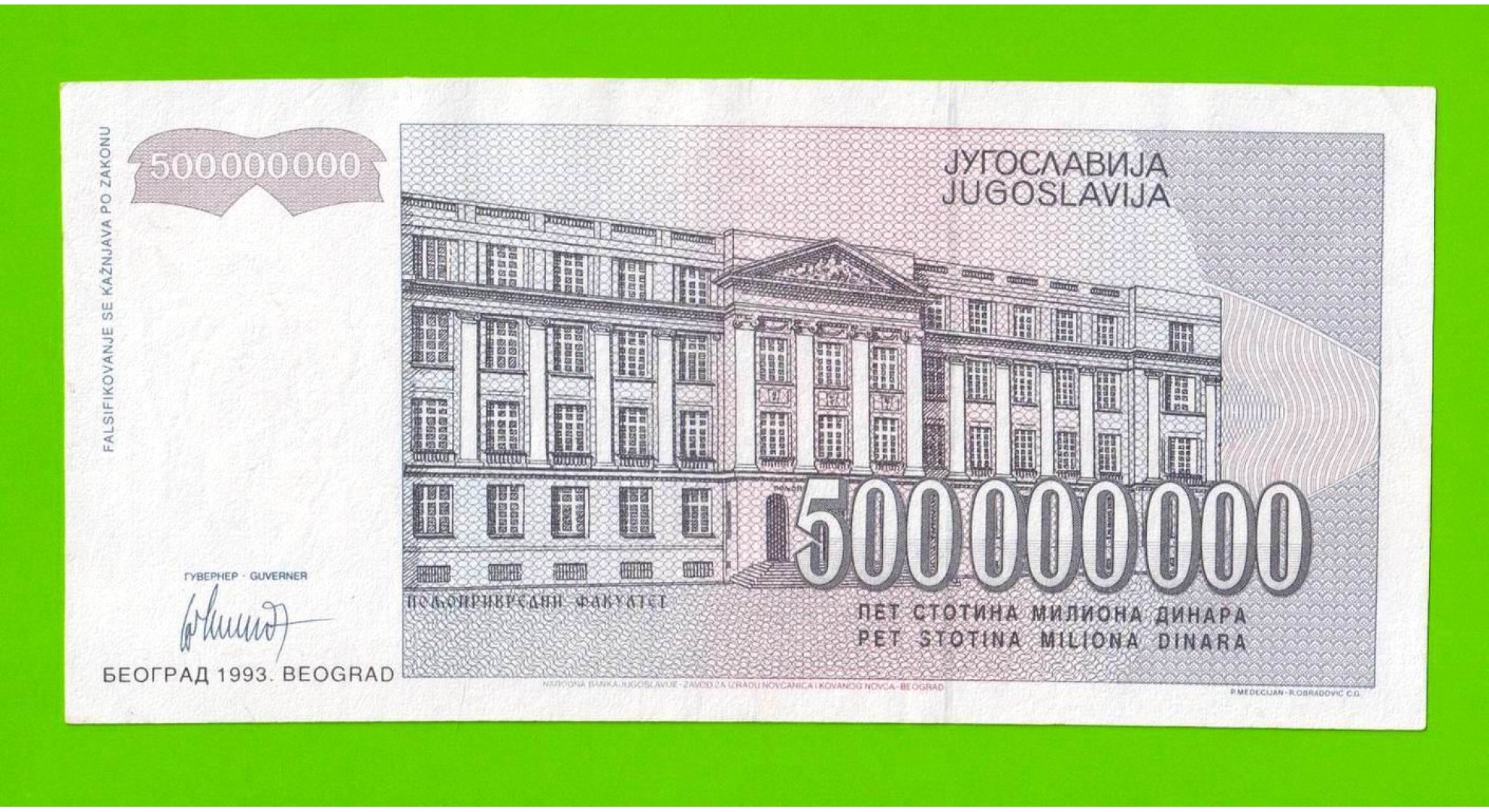 Югославия - 500000000 / 500 миллионов динаров - 1993 (AB)