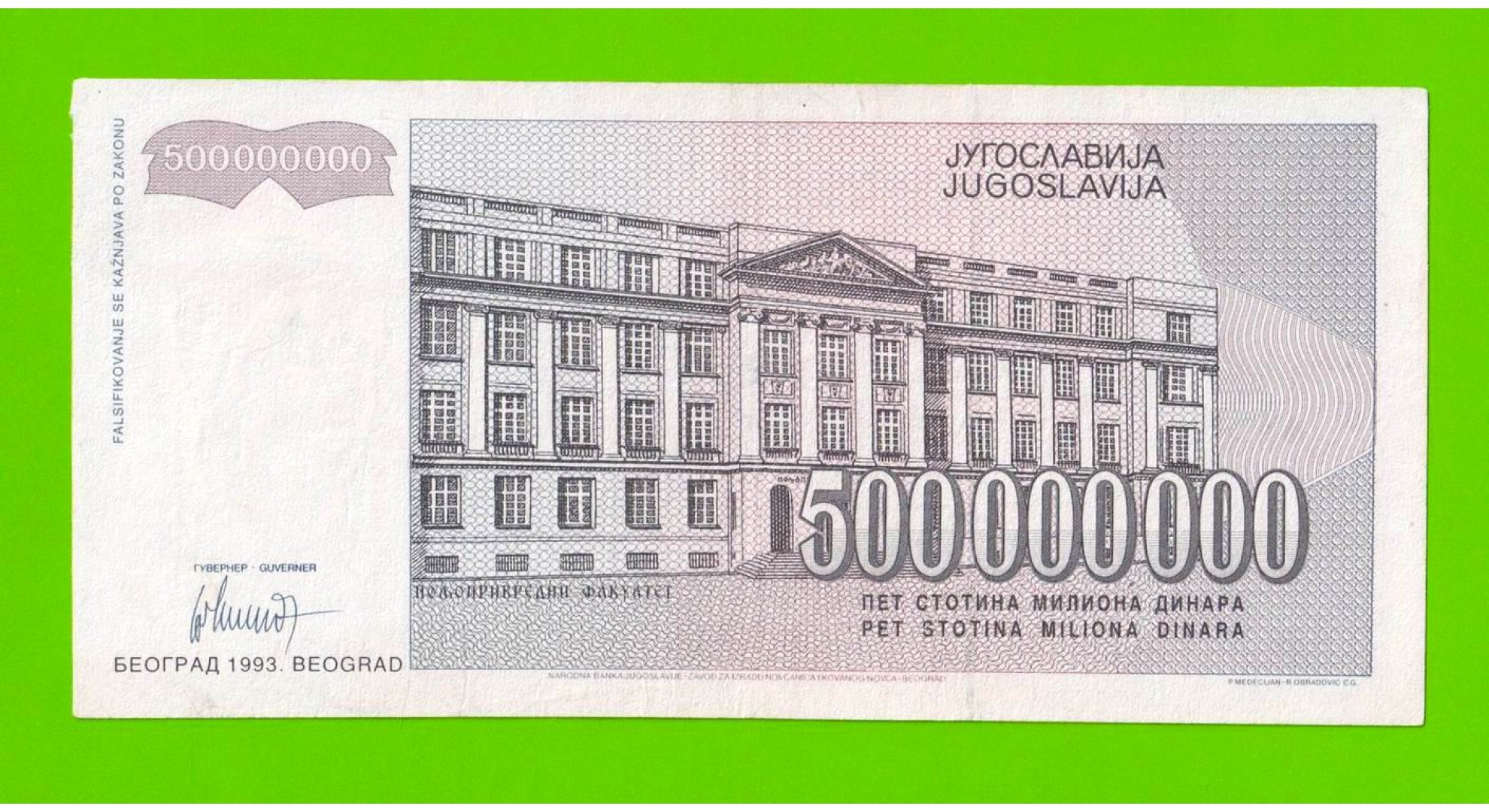 Югославия - 500000000 / 500 миллионов динаров - 1993 (AB)
