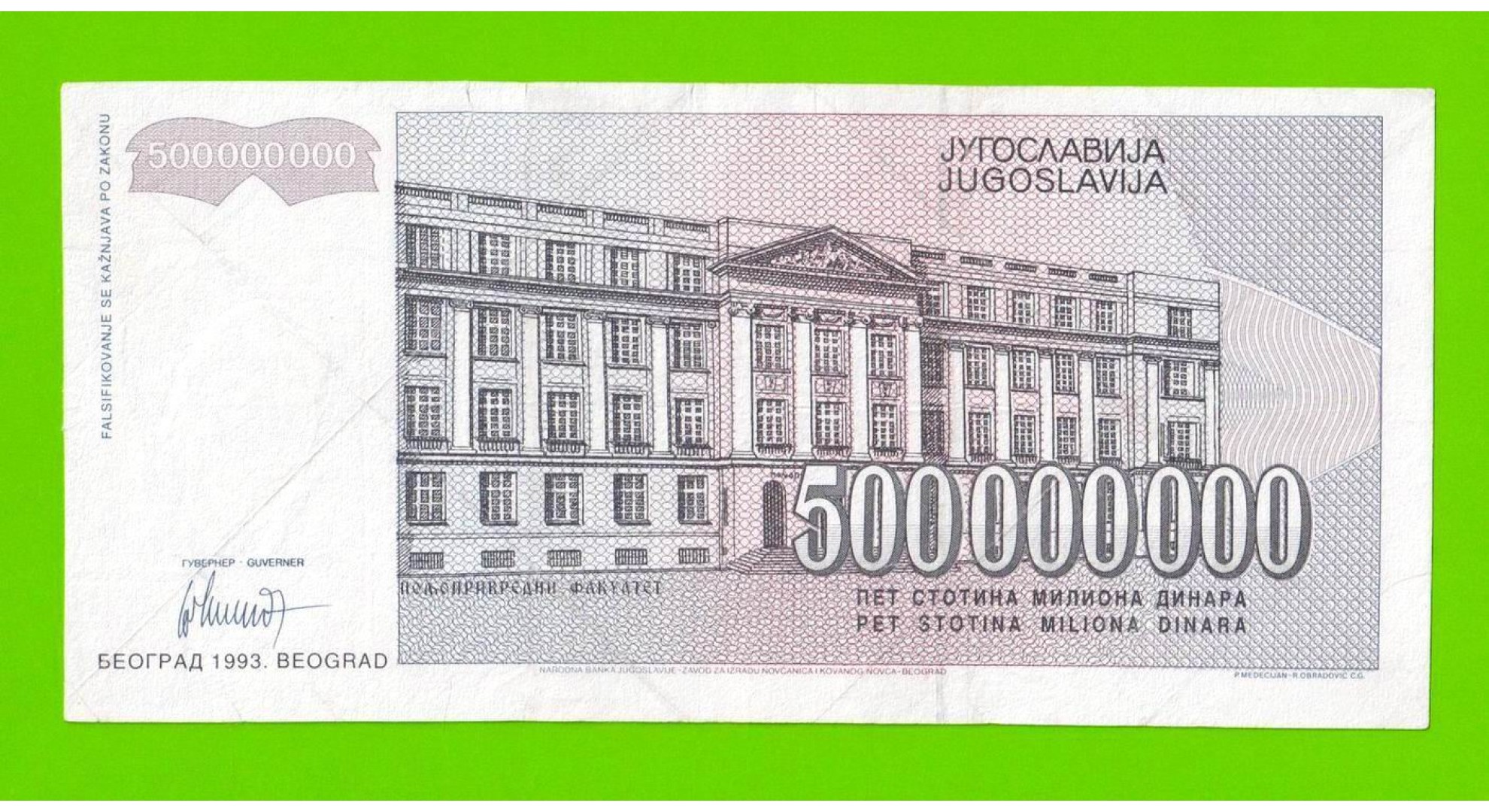 Югославия - 500000000 / 500 миллионов динаров - 1993 (AB)