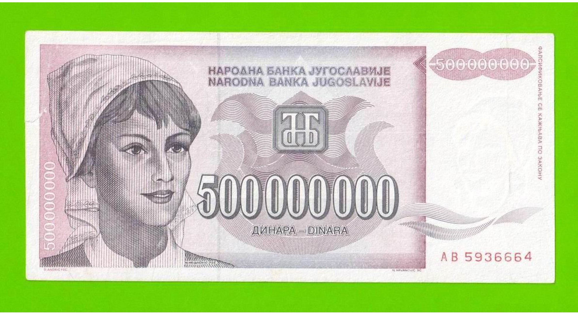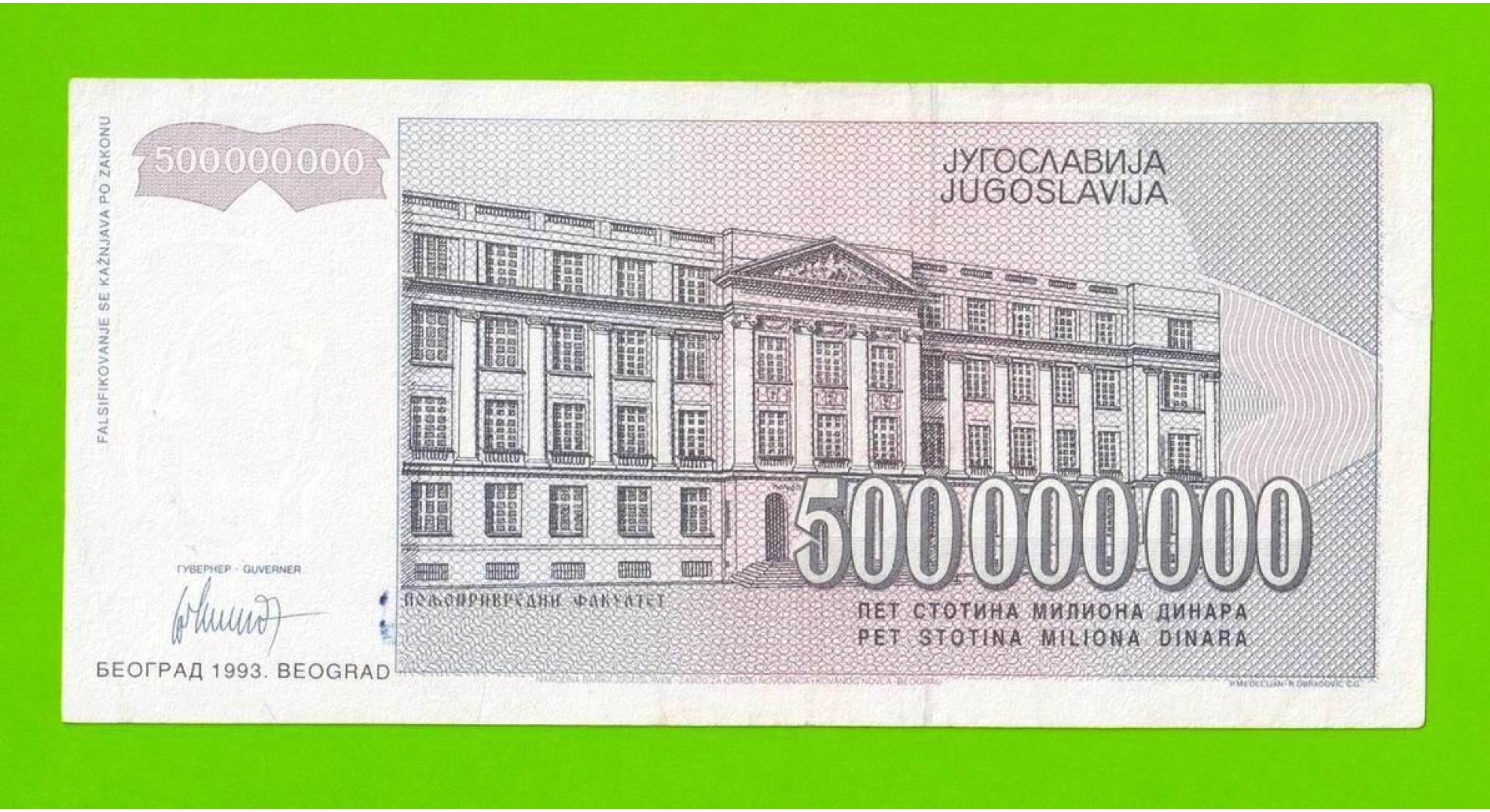 Югославия - 500000000 / 500 миллионов динаров - 1993 (AB)