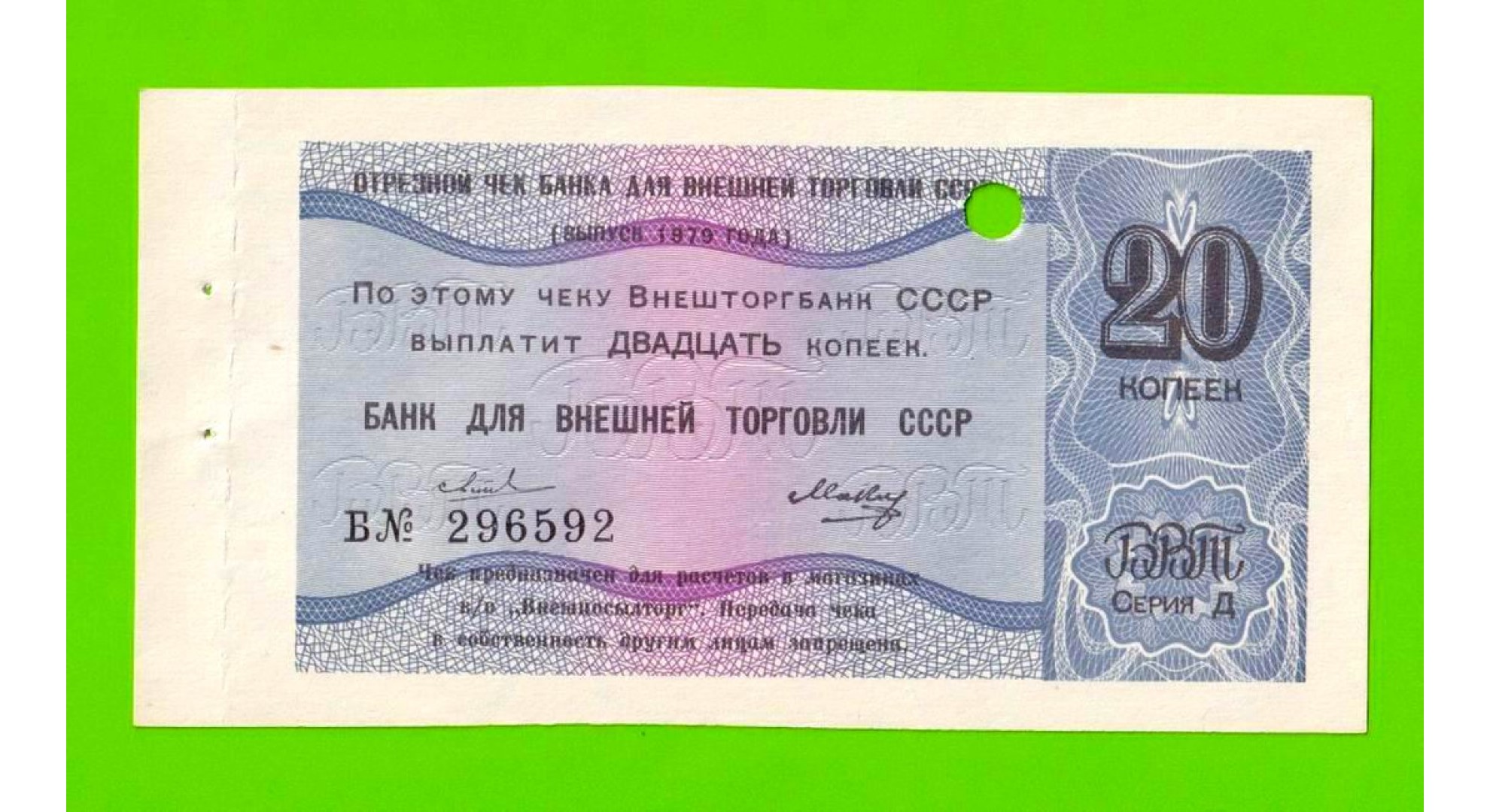 Внешторгбанк СССР - чек на 20 копеек - 1979 - погашен - UNC-!!!