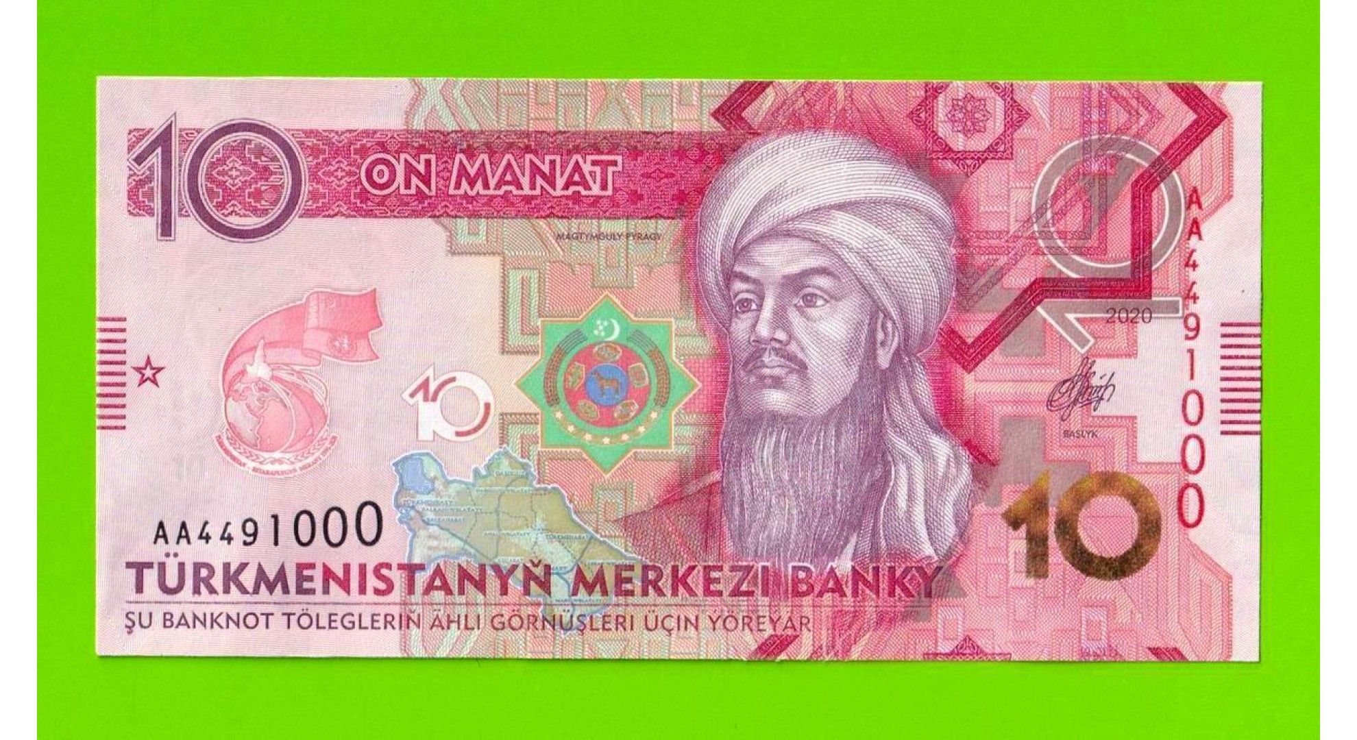 Туркменистан - 10 манат - 2020 (AA) - UNC-!!!