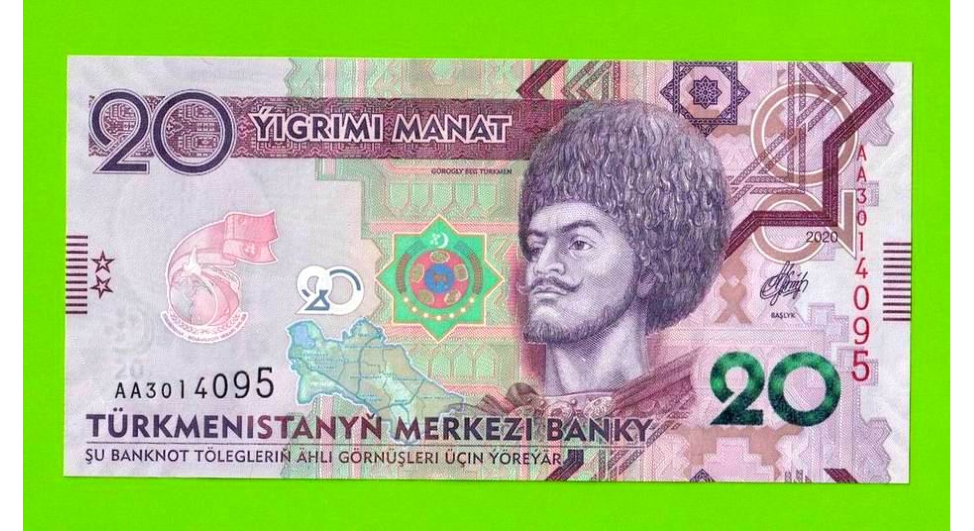 Туркменистан - 20 манат - 2020 (AA) - UNC!!!